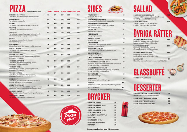 4/10Horrible staff. Started closing down the restaurant @19:55 - closing time 22:00 Removed cutlery and napkins from our table while we were eating - midway through to be precise. Looked like they absolutely dreaded their work. Food well you can't really ruin a Pizza Hut pizza can you. But a good thing we didn't select the salad bar, as it was cleared out when we got our pizza. 0 stars for staff and ambience.