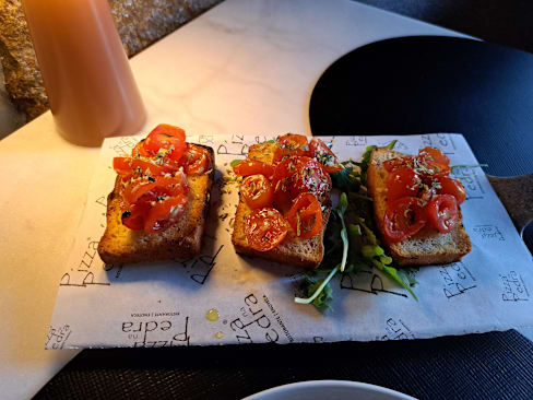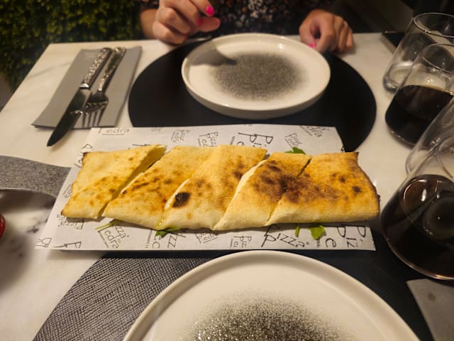 10/10We reserved online, requesting seating outside. We arrived early but were assured our table would be ready and went for a drink at the bar next door. The host at Pizza na Pedra came to let us know our table was ready and we could make our way over once we had finished our drinks. Picking the food of the menu was tricky as so many lovely options but we settled on mixed antipasti and garlic bread, followed by caprese salad and two pizzas. We were a family of 4 and loved all of it- recommend with hesitation. Thank you Pizza na Pedra 😘