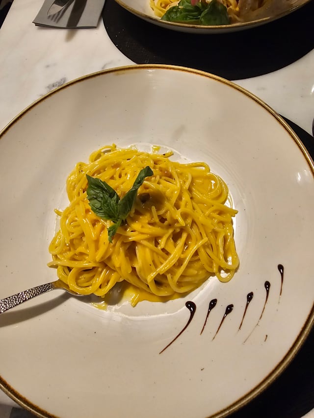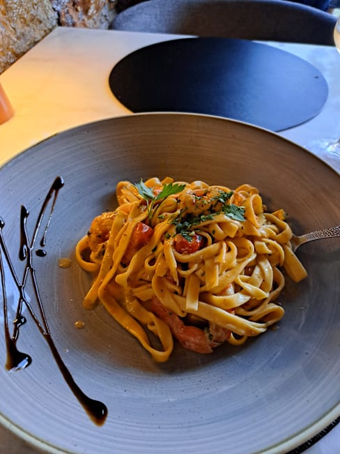 2.5/10Fresh pasta with salmon and prawn was covered in yellow colouring. Never saw pasta or seafood that colour! and the salmon was too salty. Inedible. People at next table had the same dish and agreed. Chef might need to taste it! Worst sea food dish we ever had. Pizza very undercooked. Also it’s a smoking terrace and it’s small so we had smoke wafting into our faces. No idea how people rate this place. They badly need a front of house person or manager. Service very slow. Won’t be back.