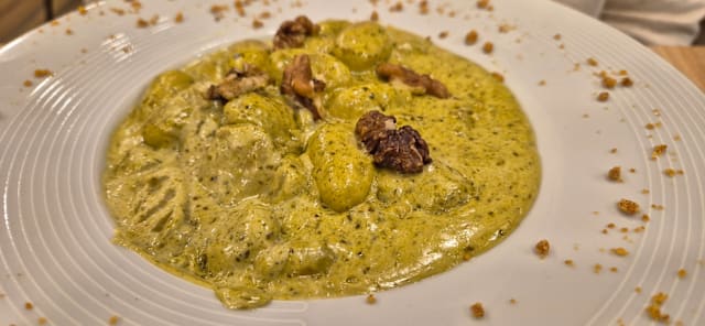 8.5/10We ordered a pizza and tagliatelle pasta. Pizza was very good and Pasta was also good. Being Indian we felt that the pasta was a little bland but maybe its just our taste buds. Various plates on all the other tables also looked good. They also serve risotto (but need advance intimation),