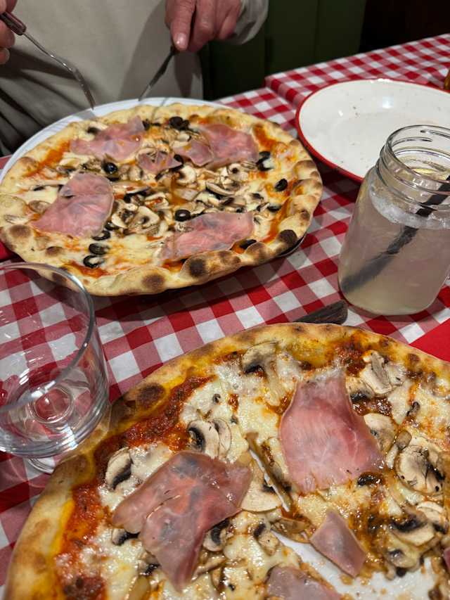- Tomate, mozzarella, ham and sautéed mushrooms