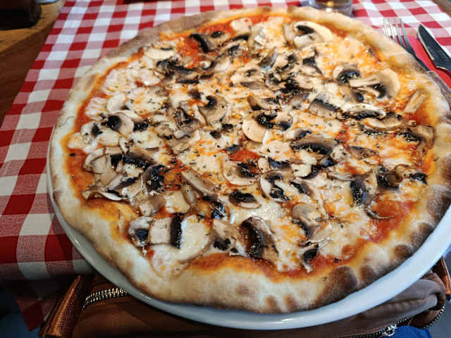 - Tomato, mozzarella, mushrooms and oregano