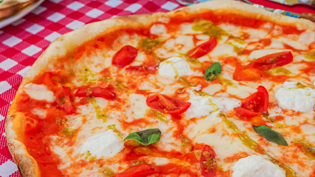 Pancetta, tomate, mozzarella fior di latte e trufa