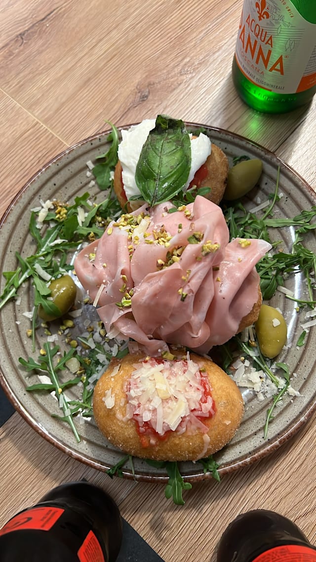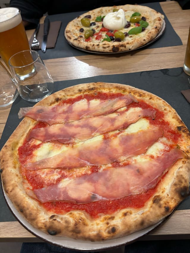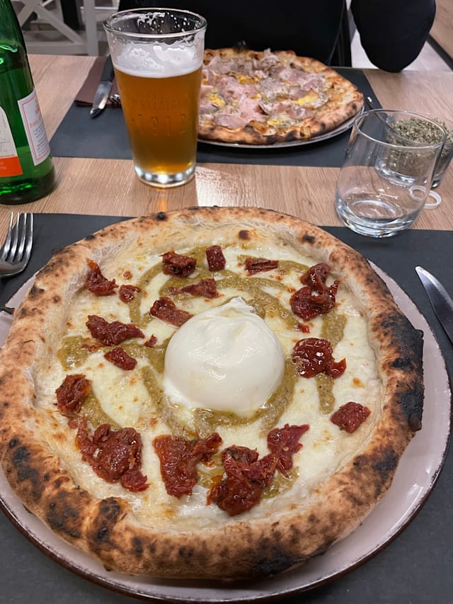 Fior di latte, pomodorini semi secchi, burrata di Andria, Prosciutto Crudo di Parma