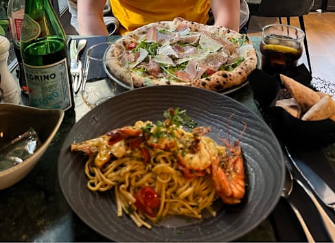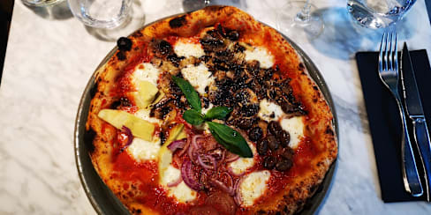 10/10Really delicious pizza, I had the 4 seasons. Super busy on a Saturday night though so do reserve.