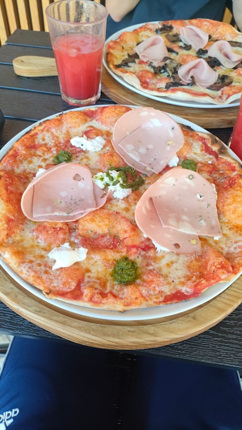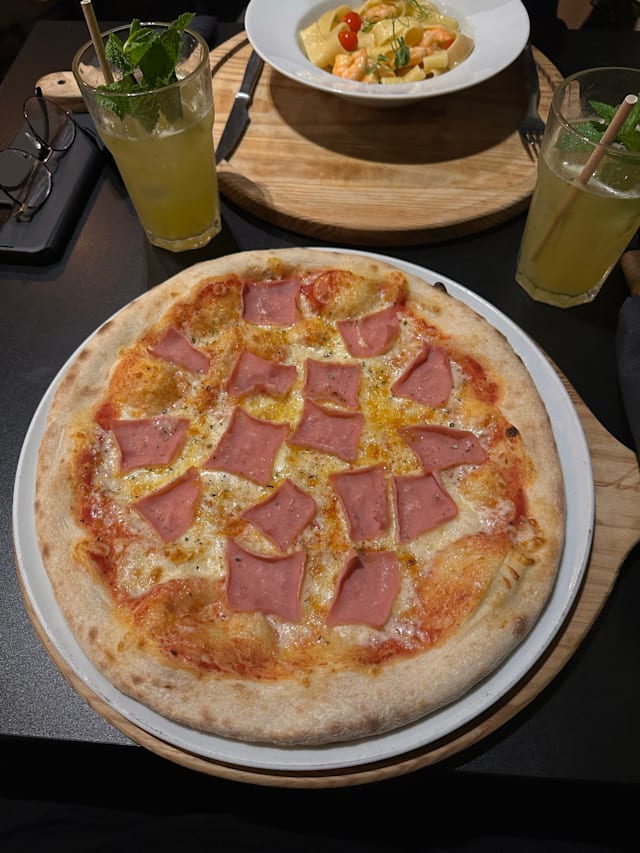 8.5/10Very nice place in an easy to reach location. Soup was very good - but croutons are supposed to be crunchy... Pizza without rim is delicious, even though I found a small hair on mine... additionally, the cutlery and glassware was not always clean. This is a very good place - make no mistake - but I hope they raise their game to become a top 10/10 location. Pricewise this is not particularly cheap either, but 30EUR for 2 persons is entirely reasonable.