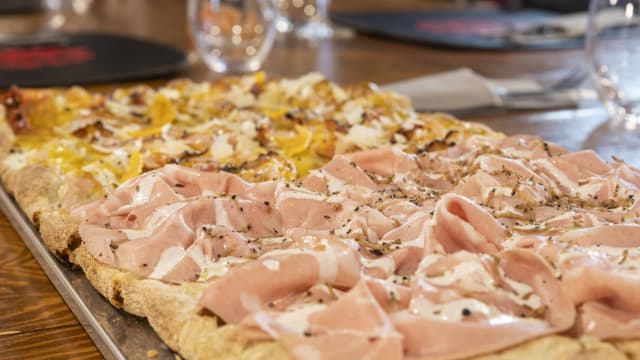 Porchetta d'ariccia - mortadella di cinghiale al tartufo - ventricina piccante - prosciutto di cervo - prosciutto nazionale - formaggi con diversi odori e sapori - pizza bianca e composte