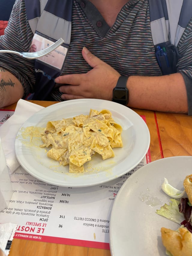 Ragù napoletano della mamma, caciocavallo di paese, fatta fritta e poi al forno, con dueddue foglie di basilico all'uscita (cit. casa surace)