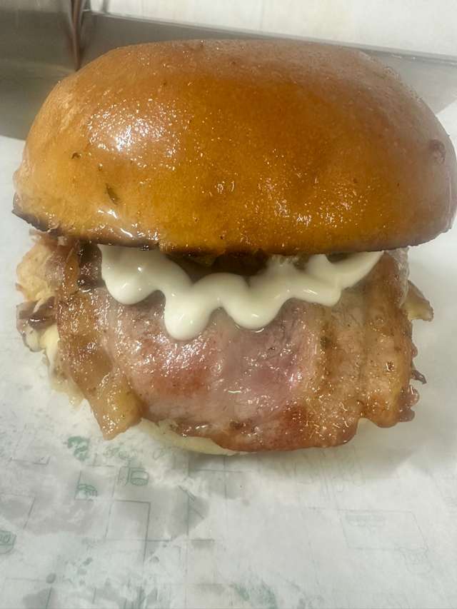 - Porchetta, patatine fritte, bacon, provola di agerola e maio al pepe nero (tritato)
