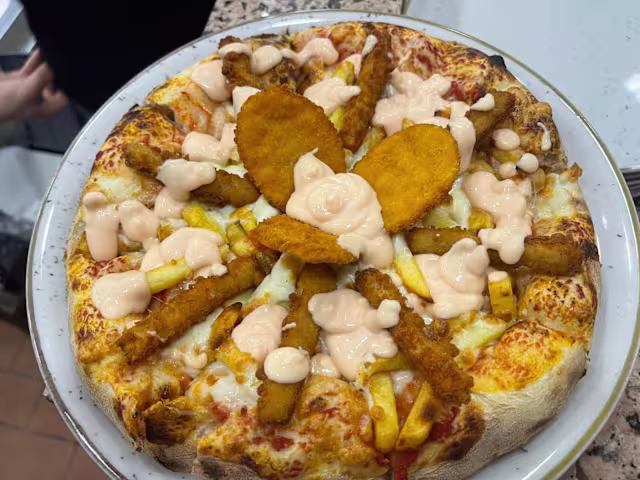 - Pomodoro, mozzarella, pollofritto, emmental, rucola, salsa BBQ