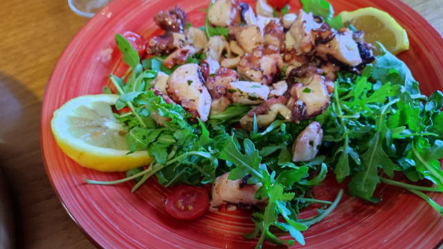 POLPO SU STRACCIATELLA E VERDURE