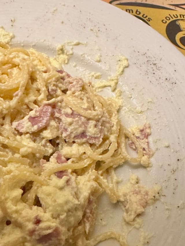 6.5/10The place is on the main street but it was quiet in the evening. The food was very poor, I could have made better bruschetta and carbonara at home. The service was nice and helpful. The food was bad. According to the reservation, we were supposed to get a 20% discount and we didn't get it. We were even charged more for a beer, which we managed to resolve on the spot. Dinner for 110 Euros was disappointing.