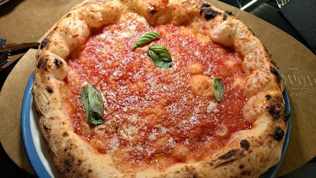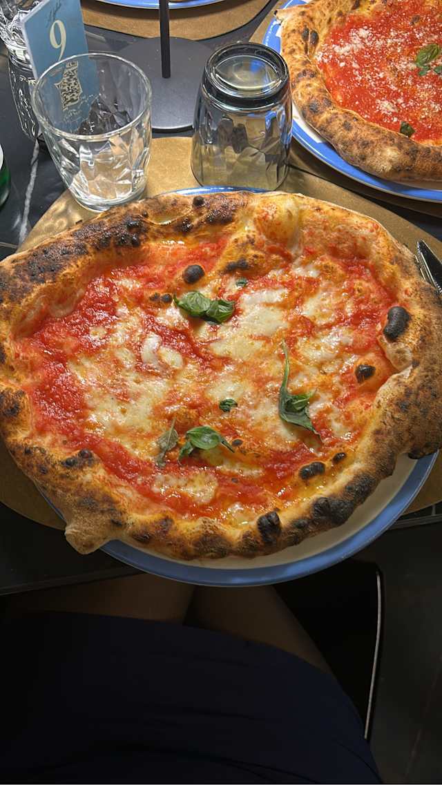 - Pomodoro s.marzano dop, mozzarella di bufala dop, parmigiano reggiano 30 mesi, basilico fritto, pepe macinato fresco, olio extra vergine d’oliva cilentano dop