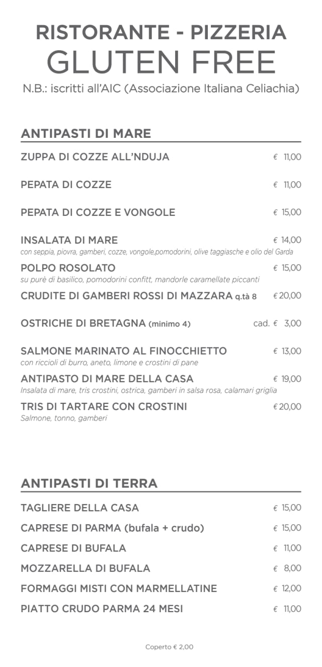 9.5/10Excellent pizzas with varied toppings. Also the cuisine is interesting, with generous portions and good quality ingredients. Quick and attentive service. High attention to gluten free options. Moderate prices.
