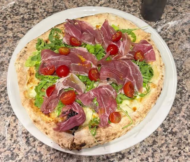 - Pomodoro, fior di latte, bresaola, rucola, parmigiano