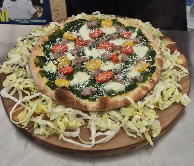 - Mondiale pizza piccante crema di verdure, rucola, stracciatella, pomodorini secchi, olive taggiasche, fili di peperoncino