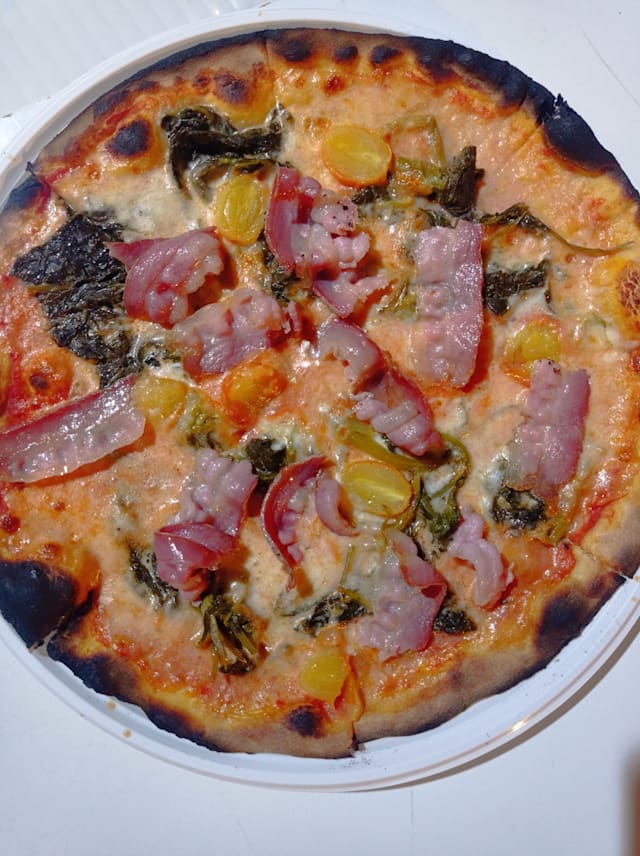 - Pomodoro, fior di latte, gorgonzola, crema di tartufo, speck, noci sbriciola