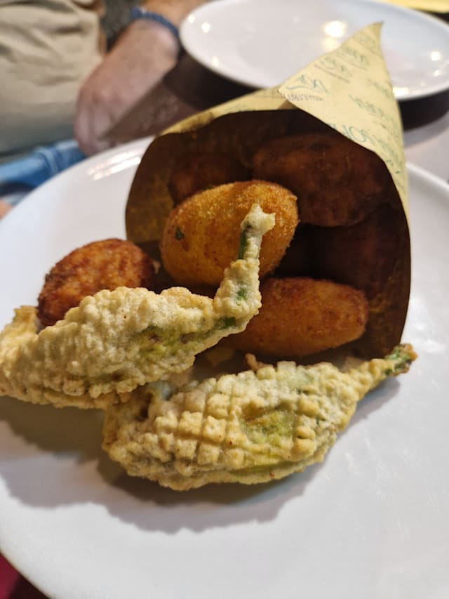 Crocchè di patate, frittatina sfiziosa, frittatina classica, arancino, zucchine, melanzane, fiore di zucca ripieno, mozzarelline impanate, crocchette di pollo e zeppoline