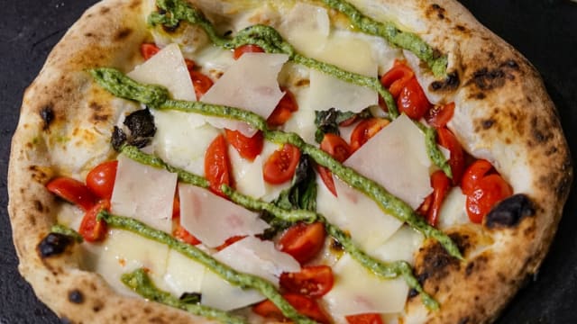 (fior di latte di agerola, prosciutto crudo di parma 16 mesi, rucola, scaglie di grana padano dop, basilico, olio evo del matese)