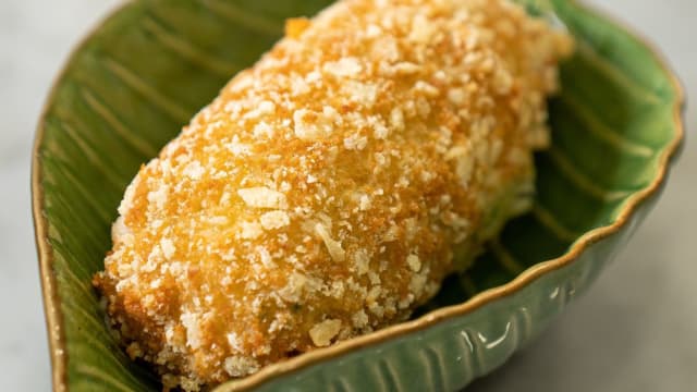 - Ripieno fritto con ricotta di bufala campana D.O.P., ciccioli napoletani, provola di agerol, pepe nero.