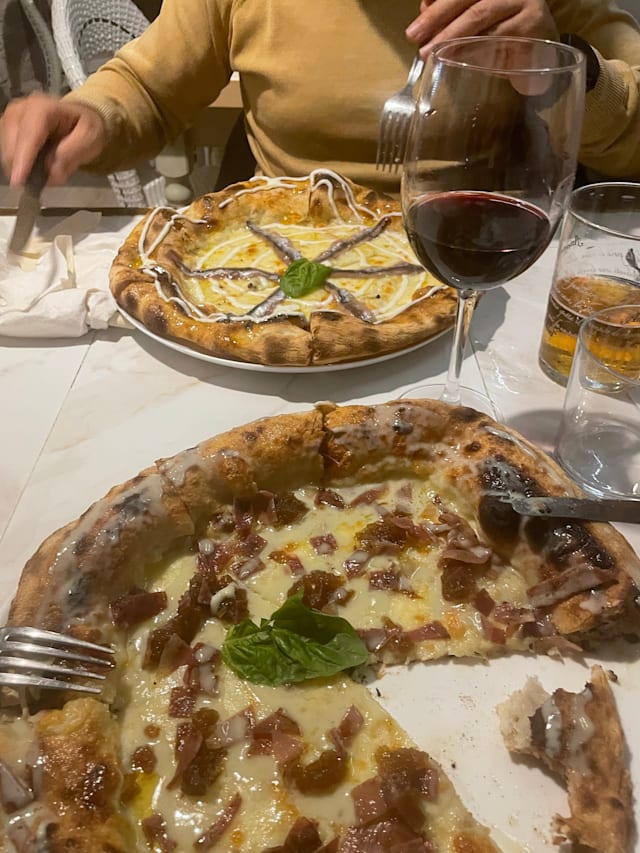 Pizza doppia cottura, lardo di patanegta, alice, miele