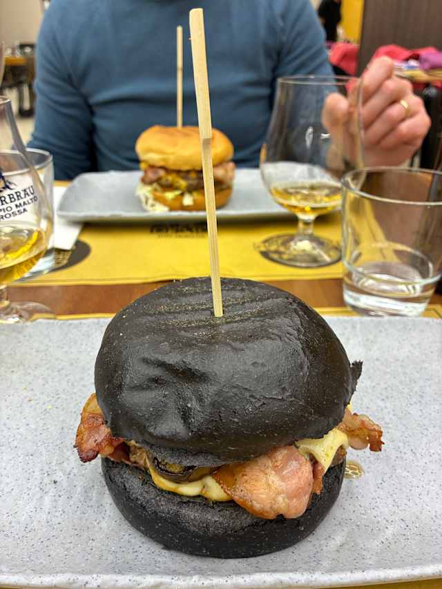 - Potato bun, doppio smash burger 100g, cheddar, speck, brie e mayo ai porcini