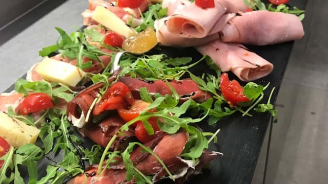 Mozzarella fior di latte, pomodoro a fette, prosciutto crudo di Parma