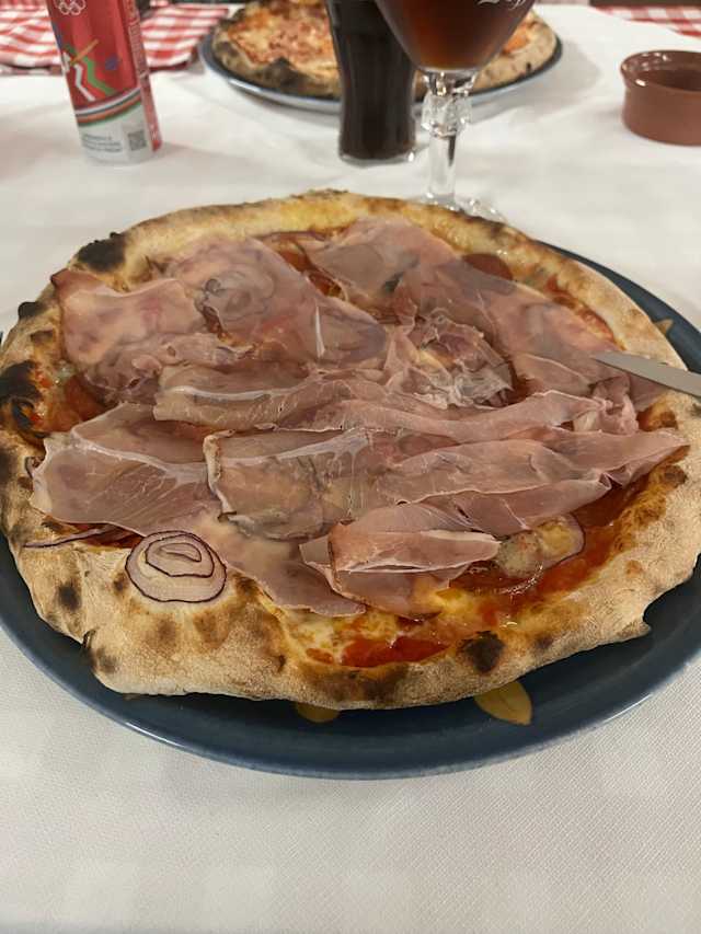 - Pomodoro, mozzarella, speck, verde, cipolla, peperoni, salamino piccante.