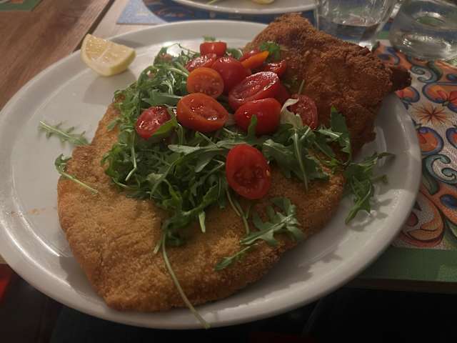 10/10Excellent restaurant with amazing only friendly staff. We had pizza slices and dessert with a bottle of wine and paid just over €30. Great value