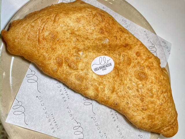 - Fior di latte di agerola, patate cotte in burro di arachidi, cornicione in crosta di grana DOP riserva 20 mesi, lardo di patanegra, crumble di aceto balsamico e tartufo pregiato ed olio oro di caiazzo per luca brancaccio
