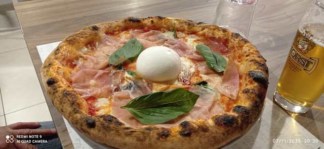 Margherita con prosciutto crudo di parma, burrata di andria da 125 gr e basilico.