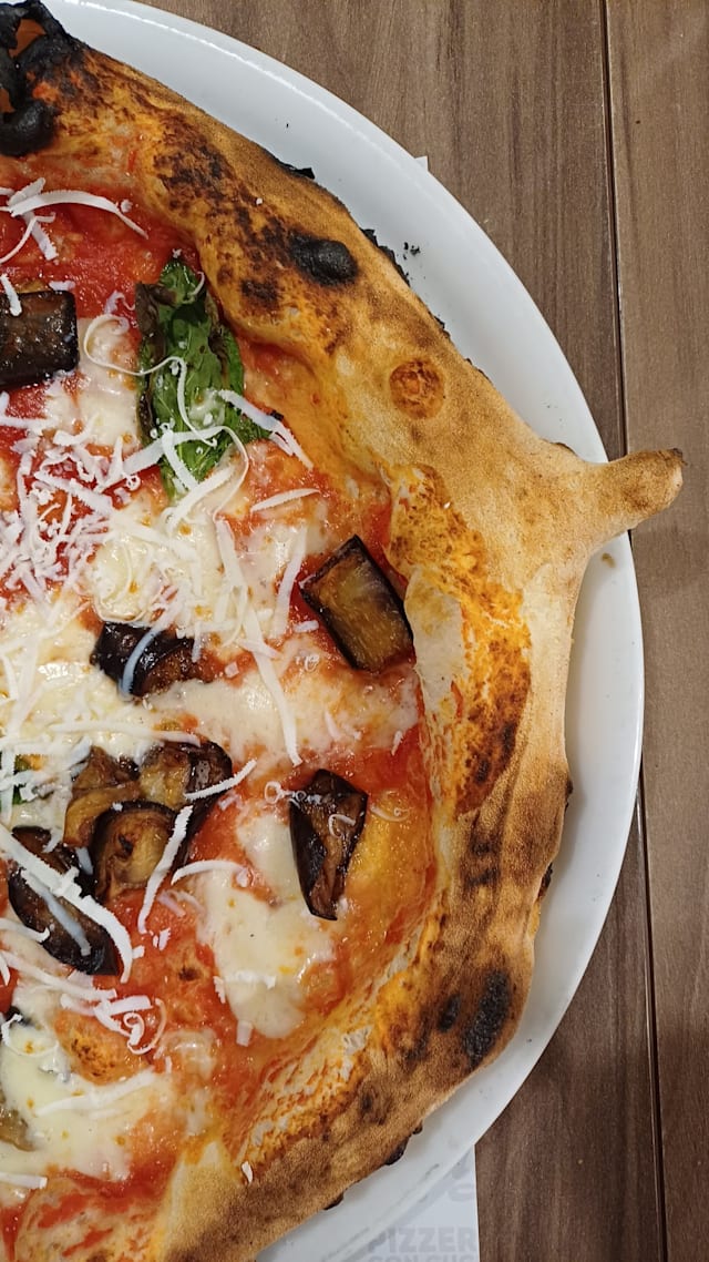 Margherita con melanzana a funghetto, ricotta salata e basilico.