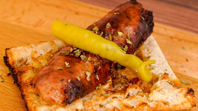 Tosta de chorizo criollo, guindilla y chimichurri (aderezo argentino)