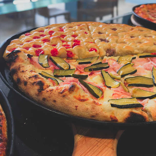 - Pomodoro, mozzarella, zucchine, pancetta, ricotta salata