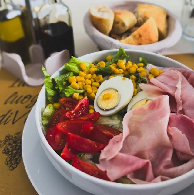 - Pomodoro, mozzarella, prosciutto cotto, funghi, carciofi, peperoni, olive