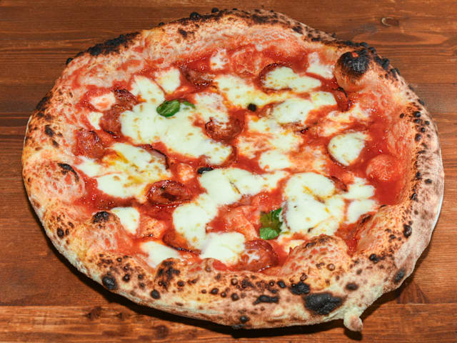 (Fior di latte, cigoli, salame napoli, pomodoro, basilico)