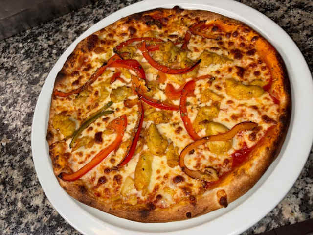 - Oignons, champignons, poivrons, ail, basilic, sauce tomate