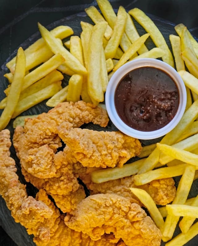 Salsa BBQ, mozarella, carne picada, pollo y oreganó