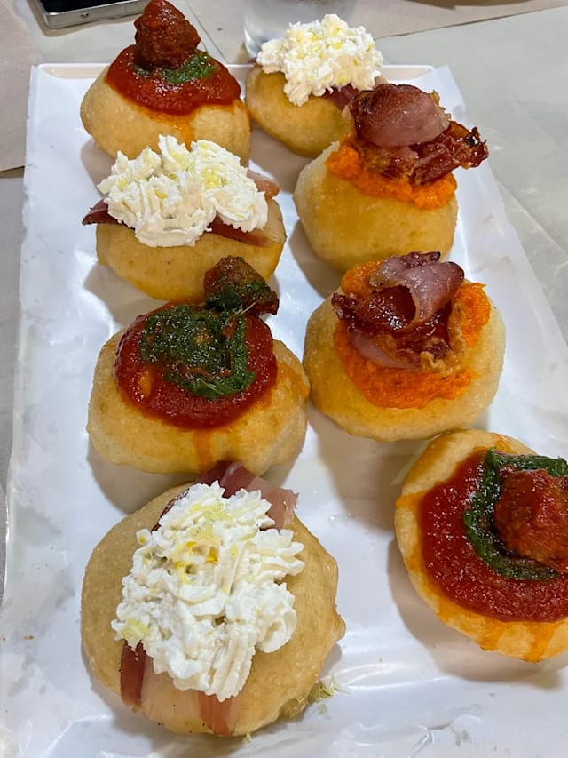 Zucchine fritte, pancetta, fiordilatte campano, olio evo