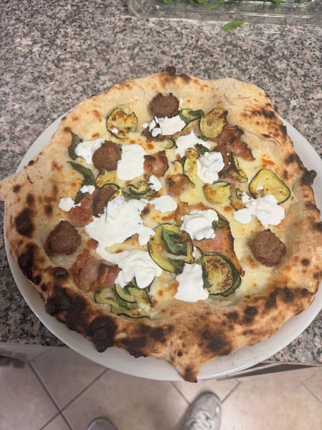Pomodoro, fior di latte, prosciutto cotto, funghi champignon, carciofi, olive taggiasche, basilico, olio EVO per chi ama tutte le sfumature della vita.