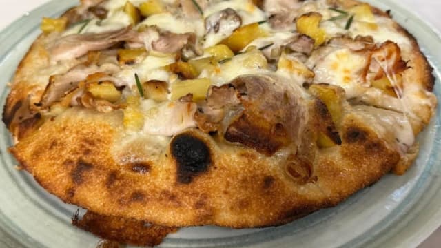Fiordilatte, salsiccia di maiale nero arrostita, funghi porcini* e provolone del matese
