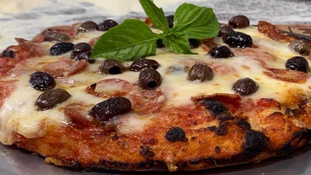 Pomodoro, prosciutto cotto, funghi freschi, fiordilatte e oliva caiazzana