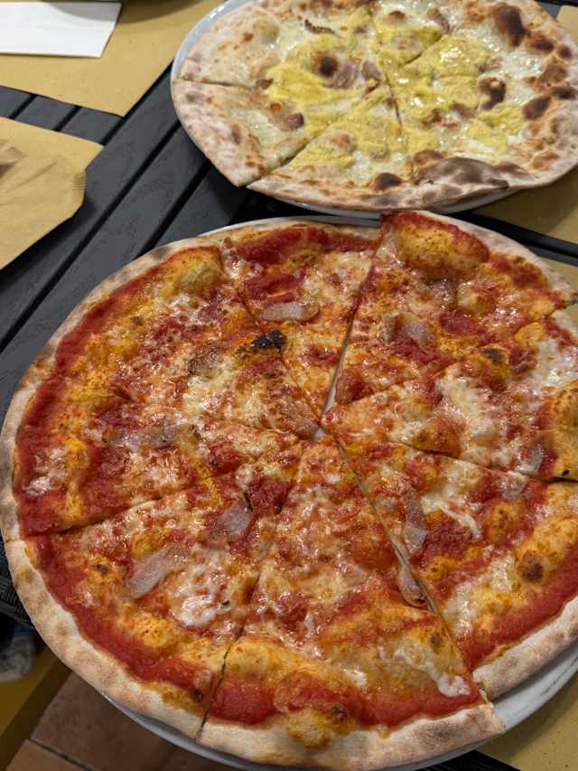 - Pomodoro, mozzarella, guanciale, pecorino