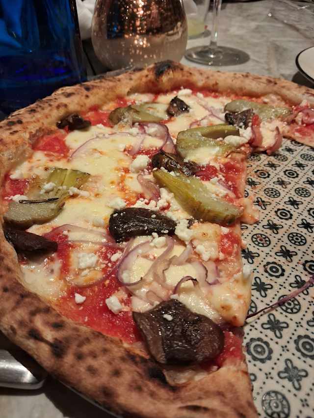 6.5/10The view and ambiance is amazing but the food not so much. The pizza had a really strong char flavor that I didn’t enjoy and the desserts are more interpretations of what they’re trying to be. Example; the tiramisu was a gelatin ball with cake inside. However the appetizers were pretty good and the bread was also great. Service was great and all the workers were extremely kind and helpful, but they didn’t come around often. If you’re visiting for the view, go to the bar upstairs instead. I could see this place being worth it if you have younger kids but still want that rooftop experience.