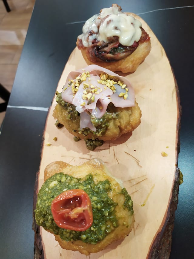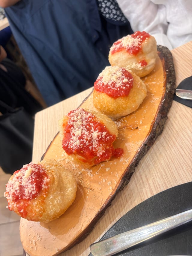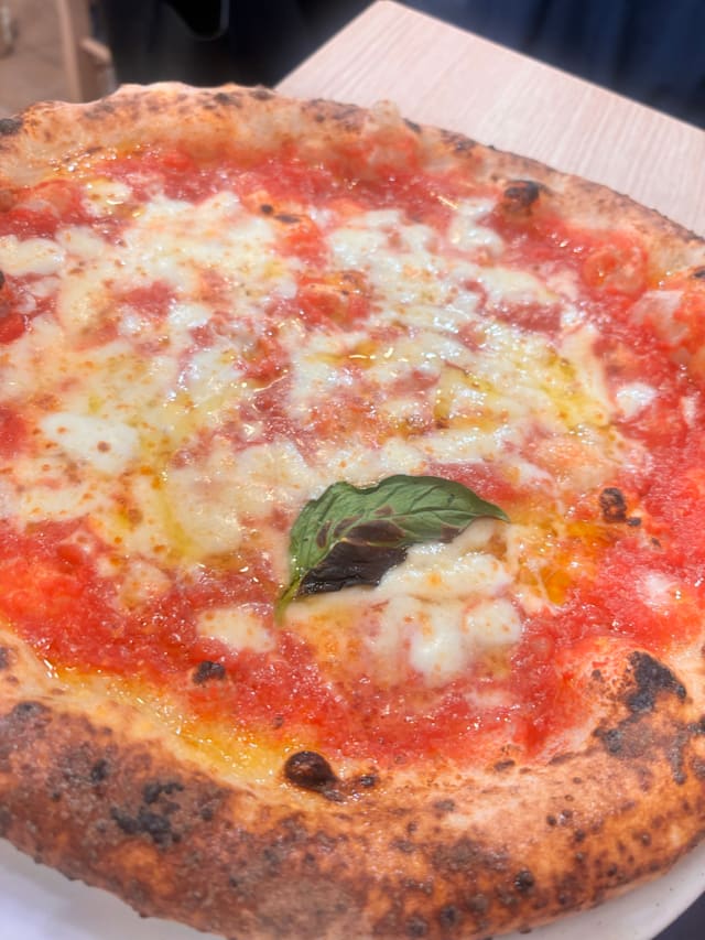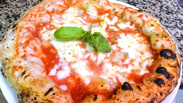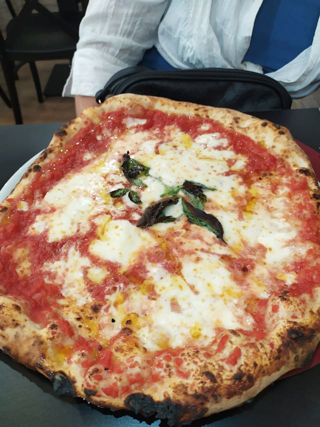 Fior di latte del monti lattari, pomodoro pelato san marzano DOP dell'agro sarnese nocerino "solania", basilico fresco, parmigiano reggiano stagionato mesi mesi DOP olio EVO 100% italiano maestri oleari "de carlo".