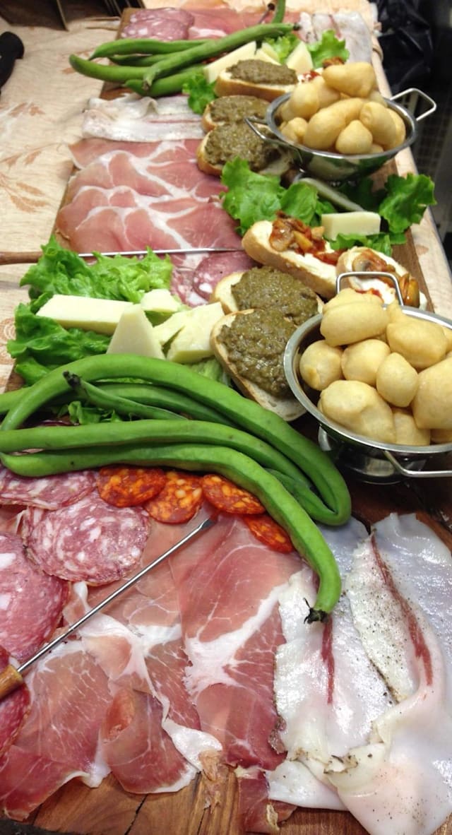 (stracciatella, mortadella di cinghiale al tartufo, granella di pistacchio, lolio al tartufo)