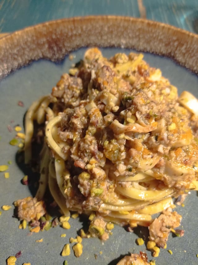 Stracchino nonno nanni, burrata campana dop, pancetta della macelleria radice di cogoleto, pesto di nostra produzione con basilico az giusto di cogoleto.
