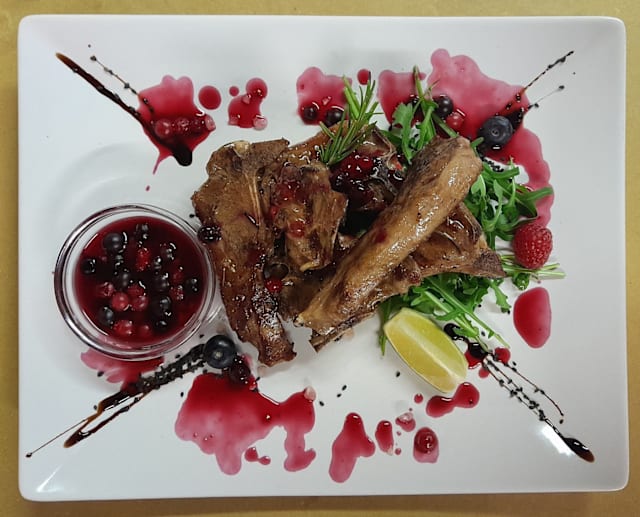 Ribs marinate in salsa BBQ** con polenta ai ferri