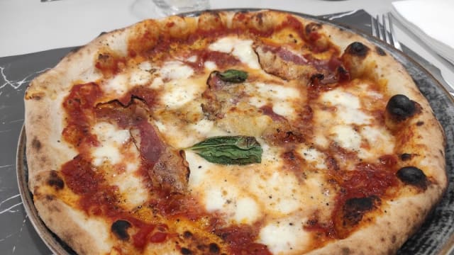 San marzano tomato, buffalo mozzarella aversana DOP, naples salami, buffalo ricotta, fresh basil and EVO oil
