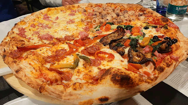 Amazing “gourmet” pizza with fresh tuna. Good price. Large room with many tables which could feel overwhelming but great to eat with so many Italian.